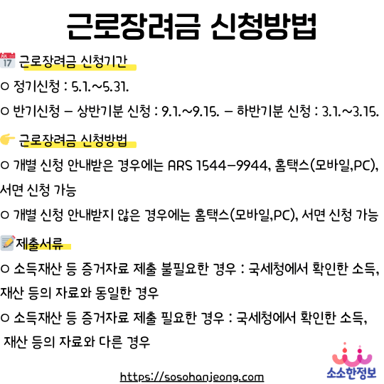 - 저소득계층의 빈곤 탈출을 지원하고 사회안전망을 확충하기 위해 도입되었으며, 근로소득, 사업소득 또는 종교인소득에 따라 산정된 근로장려금을 환급 형태로 지급하여 저소득 계층의 근로를 유인하고 실질소득을 지원하기 위한 근로연계형 소득지원 제도입니다.