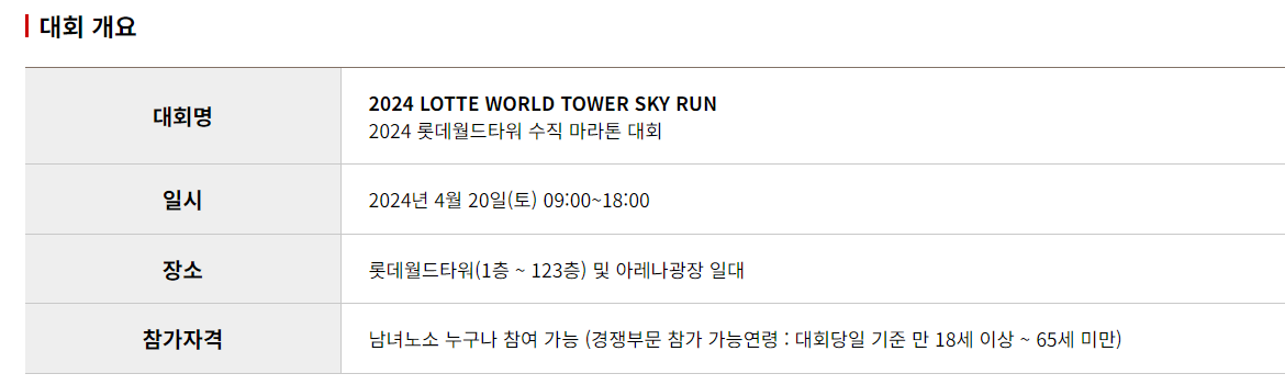 ☎ 문의 : 2024 롯데월드타워 수직 마라톤 대회 사무국