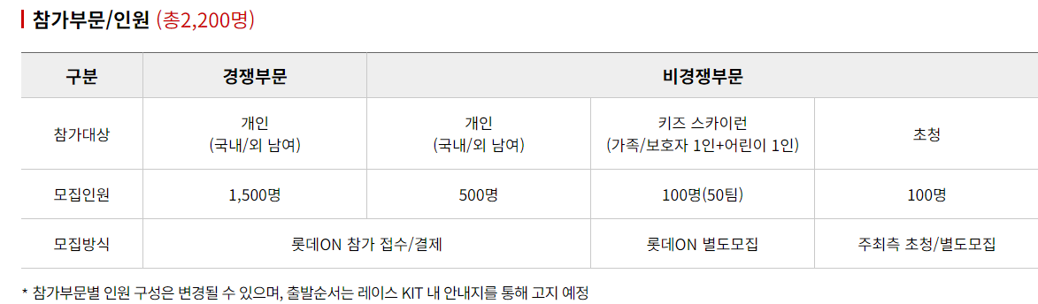 * 참가 신청 접수 종료 후 참가 자격 양도나 대리 참가는 절대 불가하며, 적발 시 실격 처리됩니다.