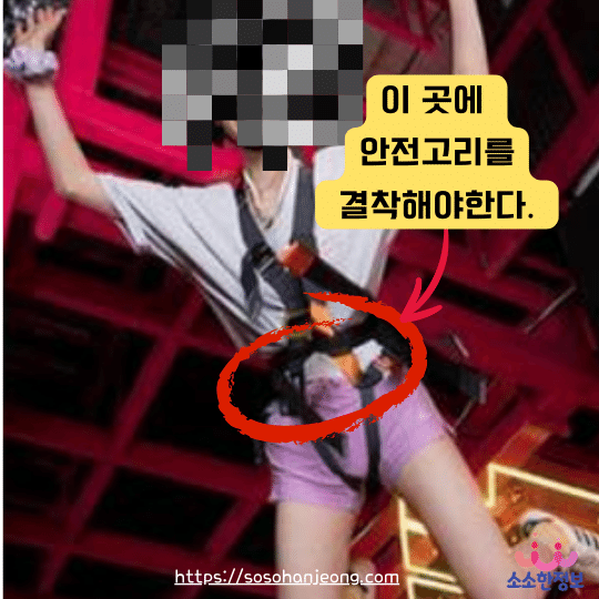 '스몹'에서는 개별적으로 안전장비를 착용한 후 추락 방지를 위해 안전고리 연결 후 체험을 시작하도록 안내하고 있다.