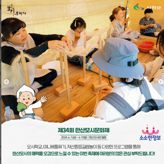 대한민국 유일의 전통섬유 축제인 한산모시문화제가 2024년 6월 7일(금) ~ 6월 9일(일)까지 한산모시관 일원에서 진행됩니다.