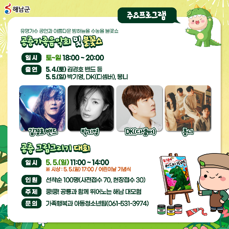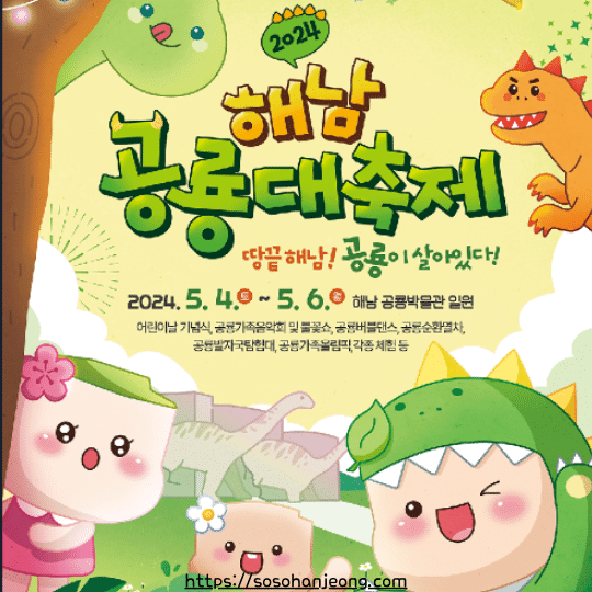 어린이날을 맞이하여 해남 어린이 공룡 대축제가 2024년 5월 4일(금)~ 5월 6일(월)까지 해남 공룡박물관 일원에서 진행됩니다.