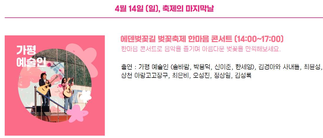3. 2024 가평 에덴벚꽃길축제 공연 및 행사안내 |