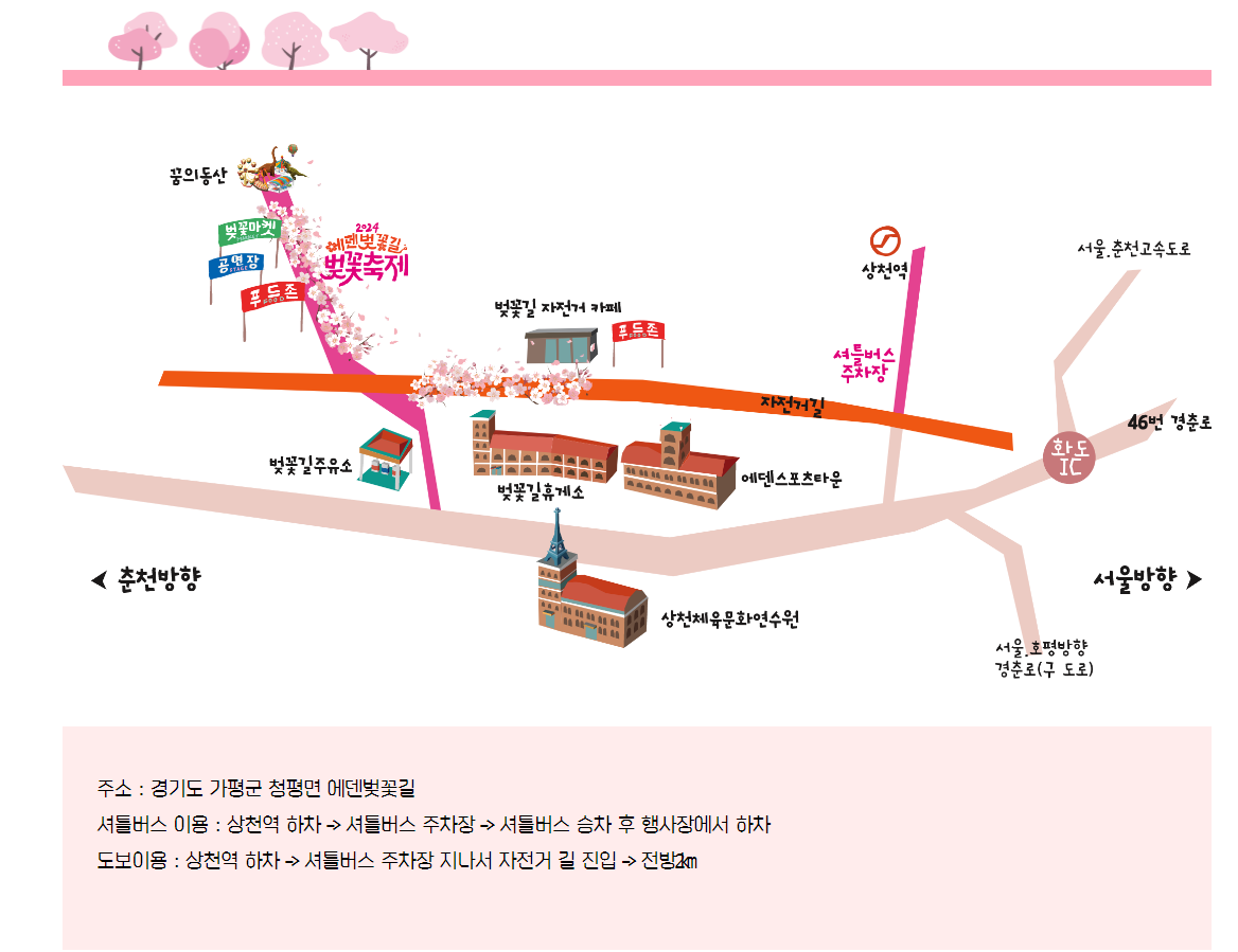 2. 2024 가평 에덴벚꽃길축제 교통편 안내 (대중교통 및 자동차 이용 시) |
