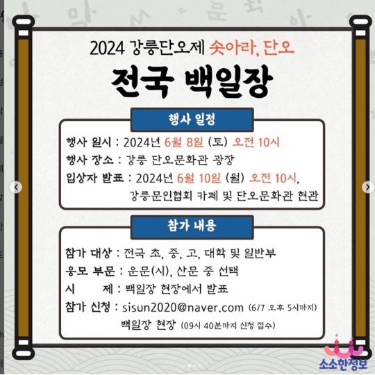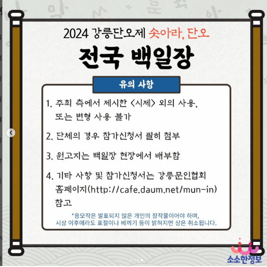 3. 2024 강릉단오제 <전국백일장> 사전신청 안내 및 신청서 다운로드