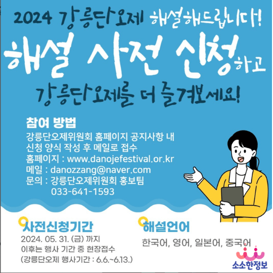 2024 강릉단오제를 더 알고, 더 즐기고 싶다면 강릉단오제 해설을 신청해 보세요!