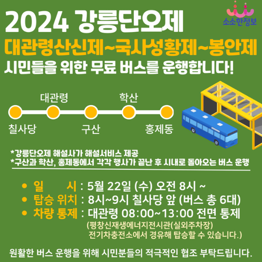 7. 2024 강릉단오제 대관령산신제~국사성황제~봉안제 무료 셔틀버스 운행 안내