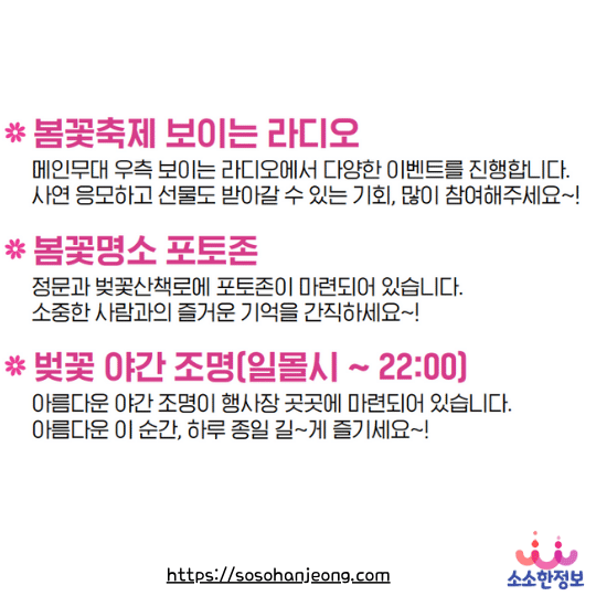 | 포토존 & 벚꽃라이트 | 하루 종일 즐기는 인생벚꽃 | |