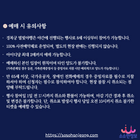 - <경복궁 별빛야행>은 지인 간의 양도가 불가능.