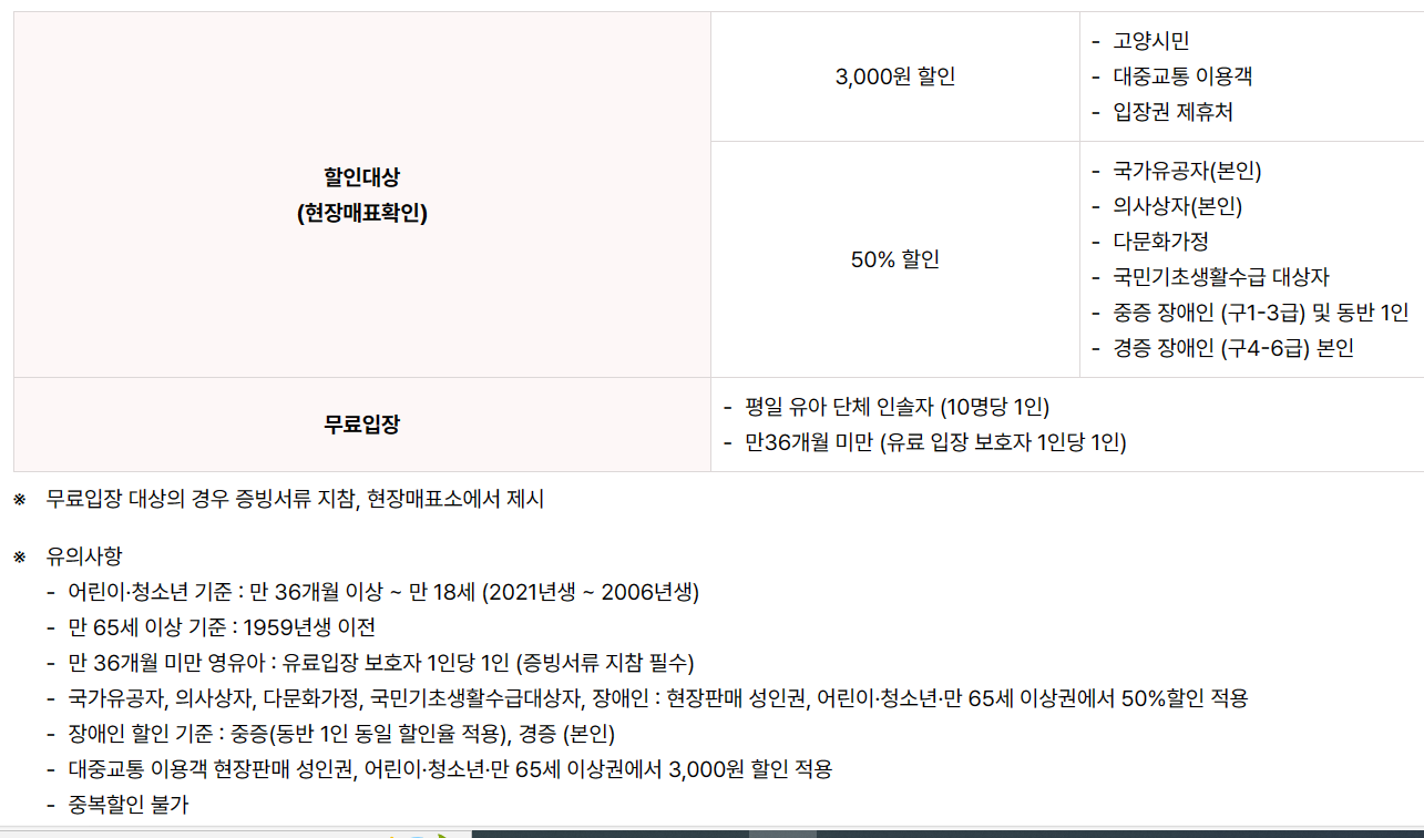 ※ 단, 고양시민 예매권, 얼리버드 입장권 등 할인권은 제외