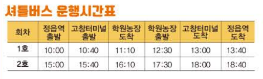 🚌 ※ 고창읍내(터미널기준)에서 택시 이용시 요금 : 약 42,000원