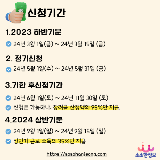 2023년 하반기분 근로장려금 2024년 3월 1일(금) ~ 24년 3월 15일(금)까지 신청