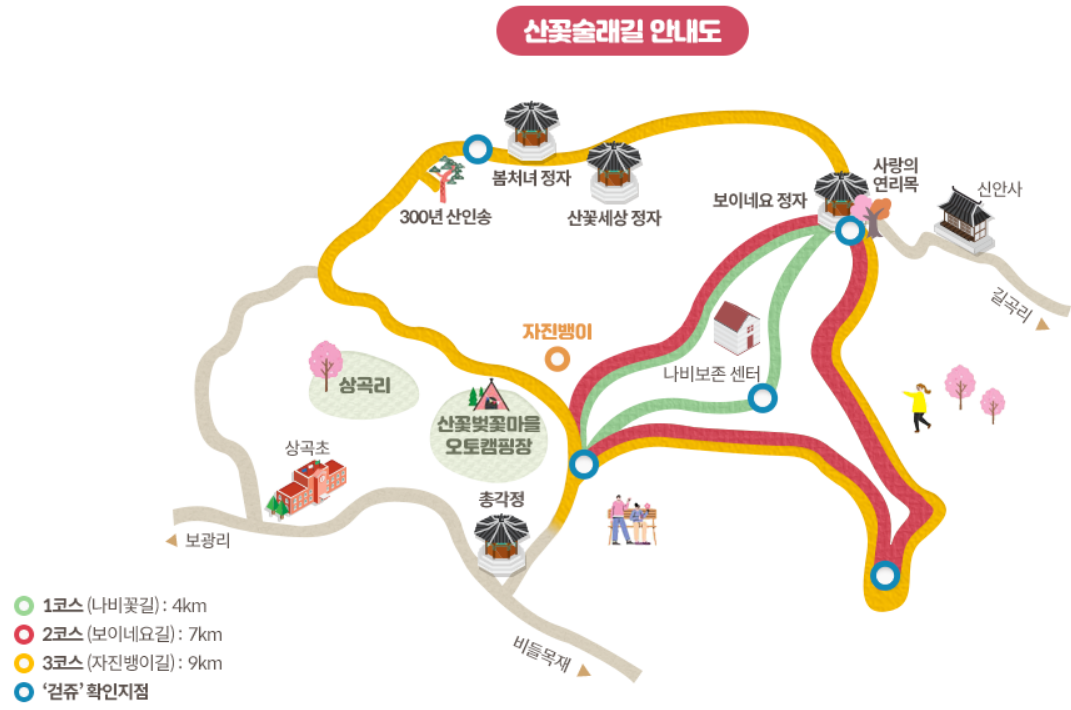 🚗 금산군 군북면 자진뱅이길 39 ( 산꽃벚꽃마을 오토캠핑장 및 산꽃술래길 일대 )