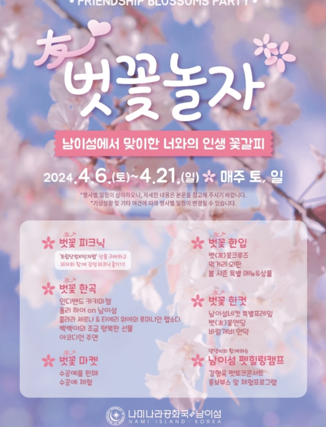 3. 2024 남이섬 벚꽃축제 일정 및 프로그램 안내 |
