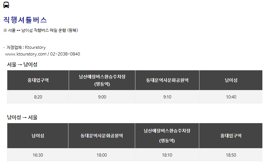 남이섬 셔틀버스 예약사이트 바로가기👆