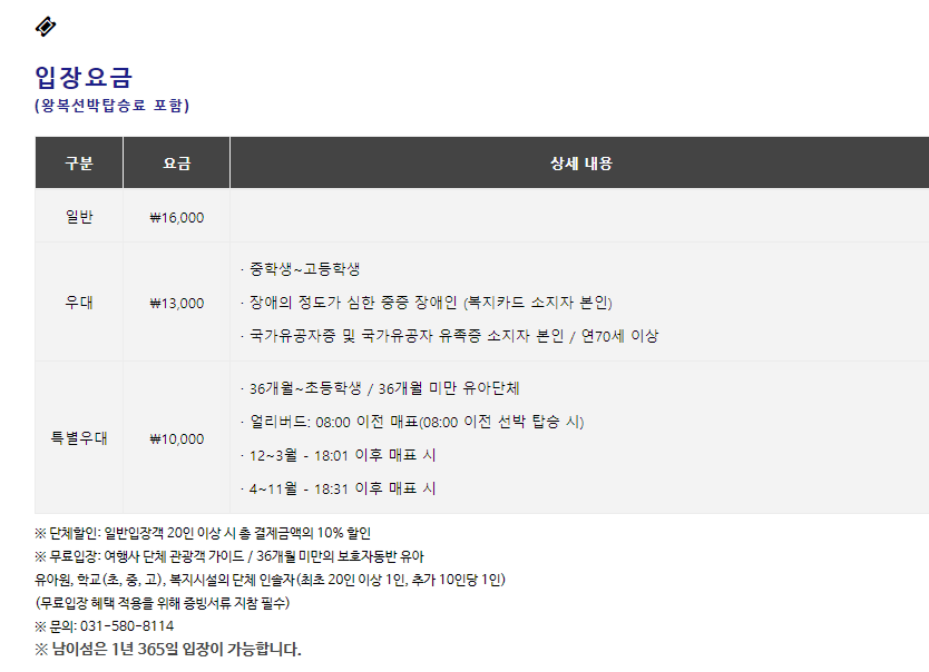 4. 2024 남이섬 벚꽃축제 이용 요금 안내