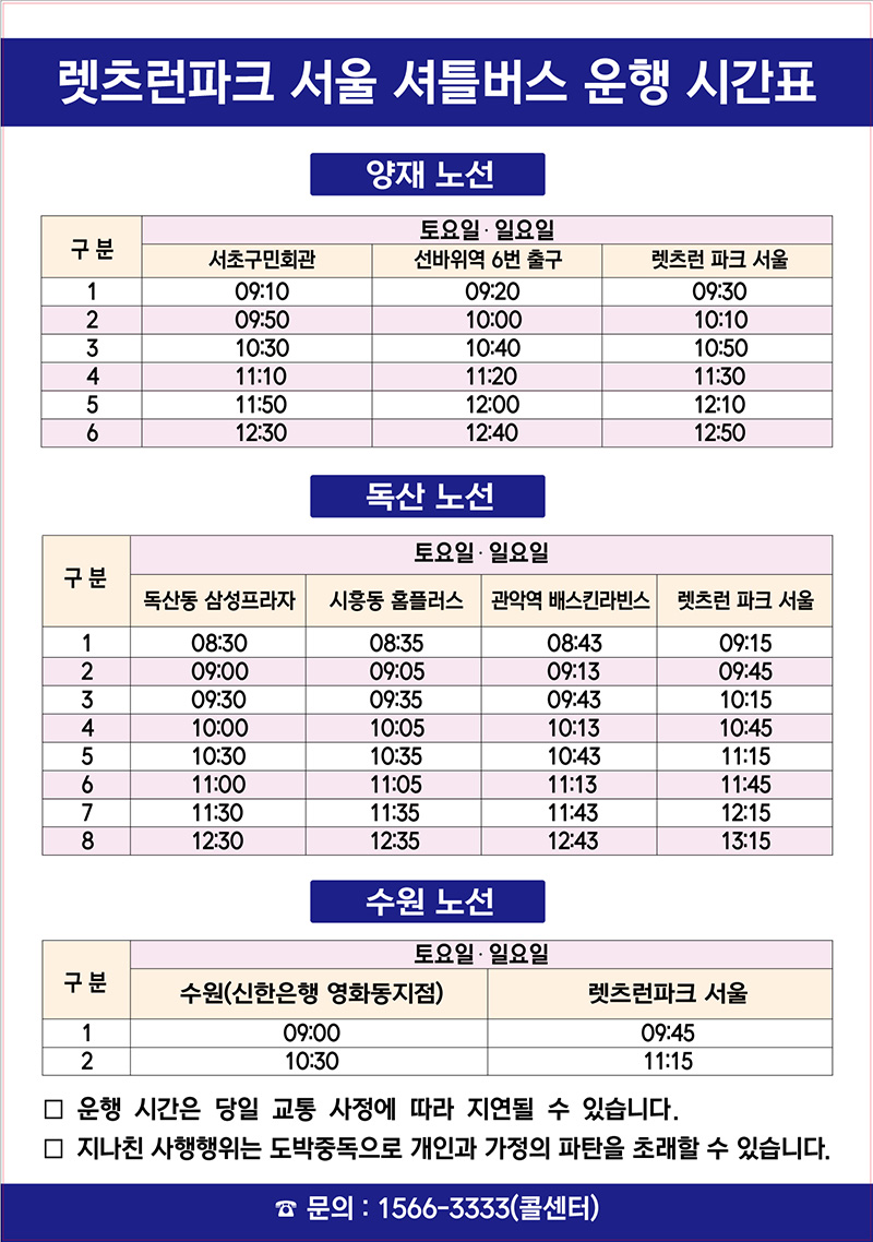 1. 렛츠런파크 주차안내 및 셔틀버스 안내 |