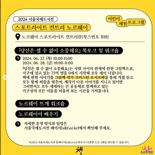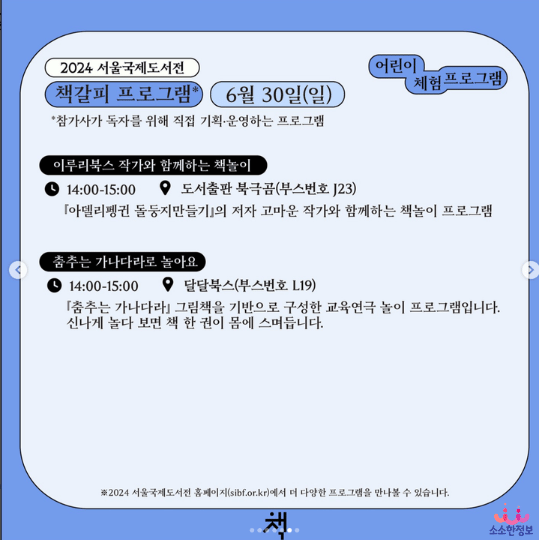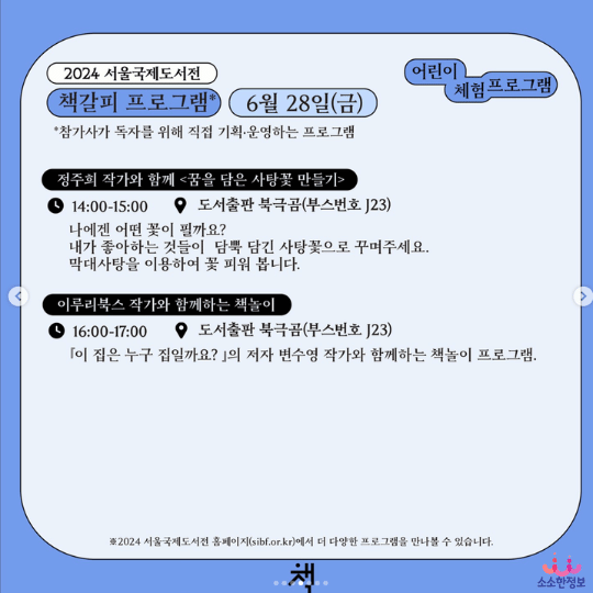 ✔ 2024 서울국제도서전의 전시*는 별도의 예약 없이 상시 운영되고 있습니다.