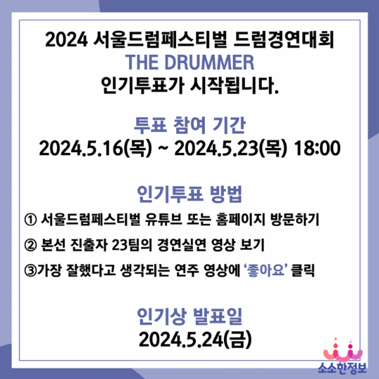 2024 서울드럼페스티벌 인기투표 바로가기👆