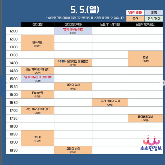 (단, 일부 실내공연 및 체험 프로그램은 예약제로 운영되며, 추후 별도 공지할 예정입니다.)