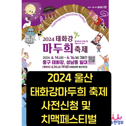 대한민국에서 가장 먼저 열리는 여름 축제로 태화강마두희축제가 울산 중구 성남동과, 태화강 체육공원 일대에서 2024년 6월 14일(금)~ 16일(일)까지 진행됩니다.