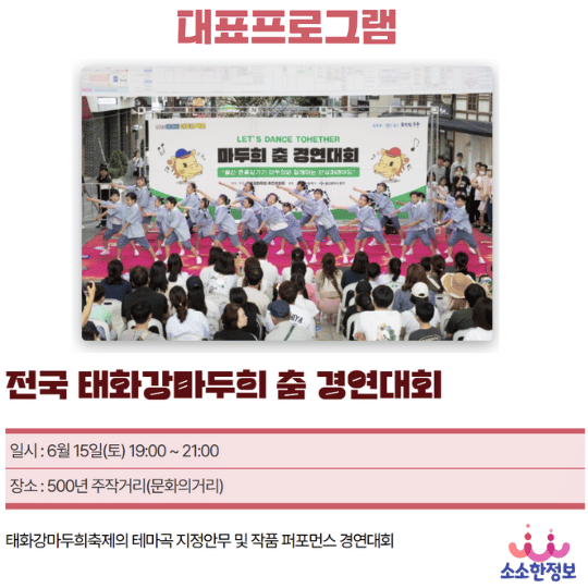 대한민국에서 가장 먼저 열리는 여름 축제로 태화강마두희축제가 울산 중구 성남동과, 태화강 체육공원 일대에서 2024년 6월 14일(금)~ 16일(일)까지 진행됩니다.