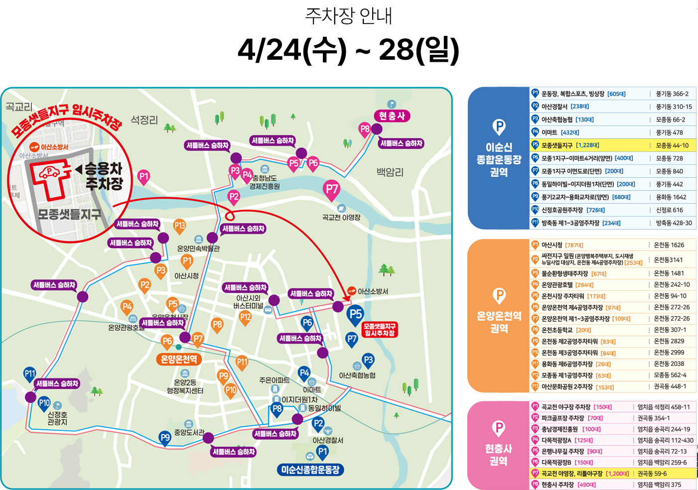 3-1) 2024 아산 성웅 이순신축제 축제 장소 별 주소