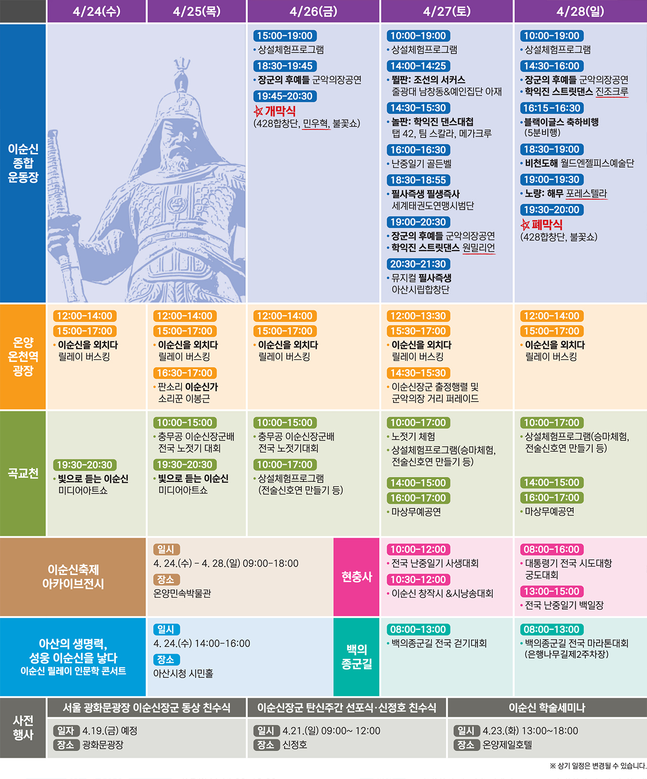 2-1) 2024 아산 성웅 이순신축제 일정표