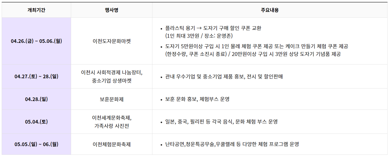 2. 2024 이천 도자기 축제 프로그램 정보 안내