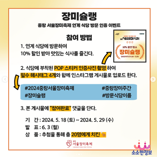 [2024 중랑 서울장미축제 연계 맛집 인증 이벤트 장미슐랭😋]