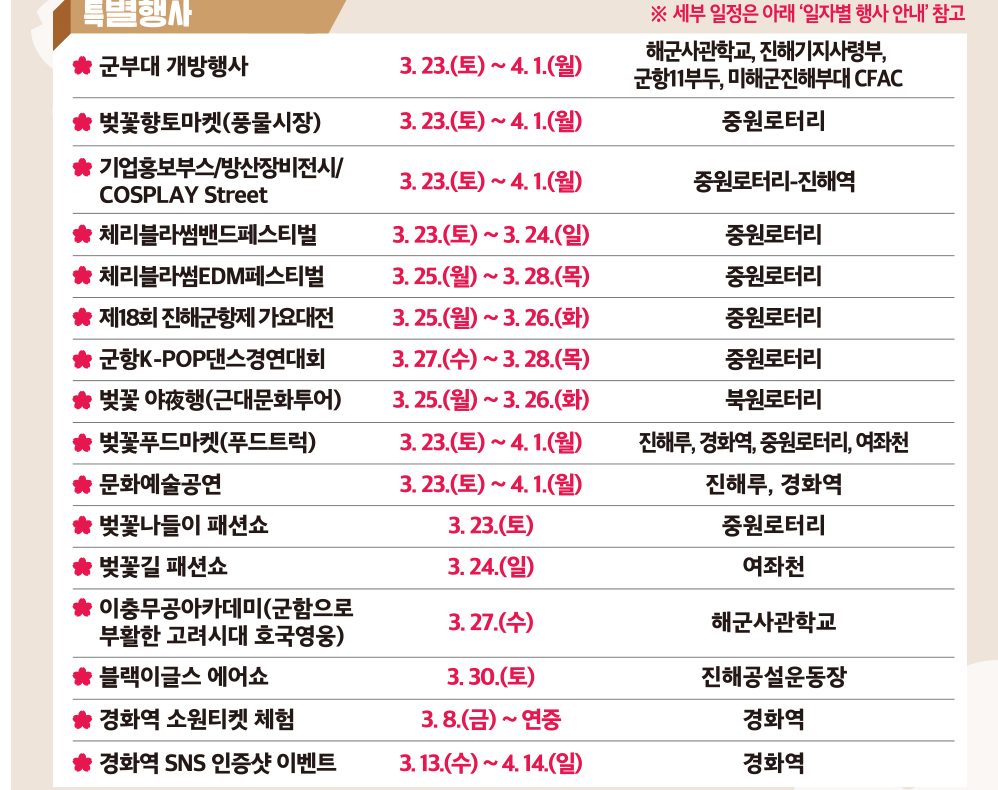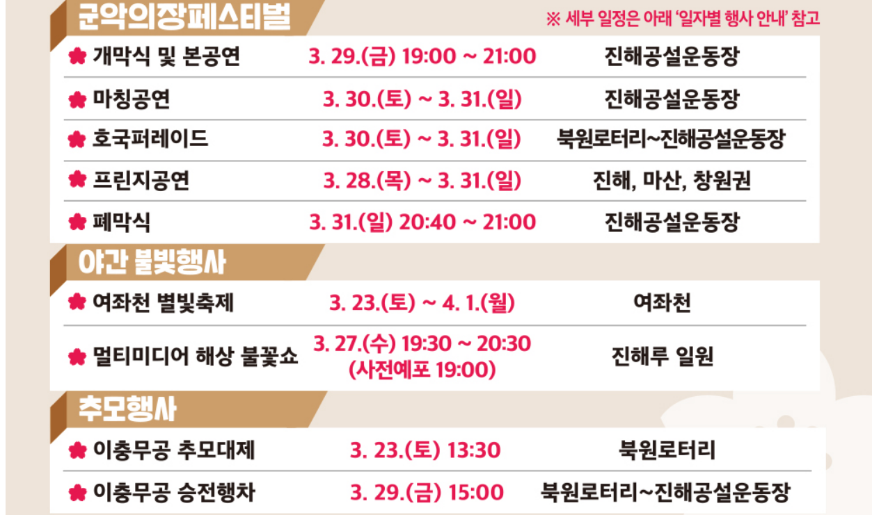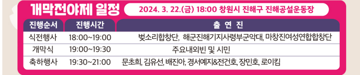 2. 2024 제 62회 진해 군항제 주요 일정 안내 |