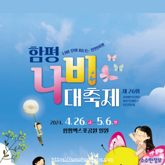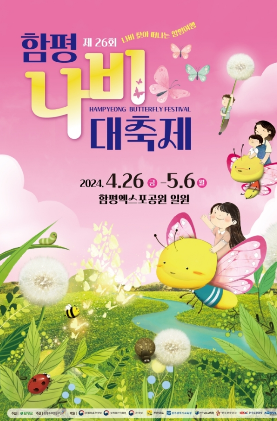 전라남도 함평에서 나비와 꽃, 곤충을 주제로 한 2024 함평나비대축제가 4월 26일 (금) ~ 5월 6일(월)까지 함평엑스포 공원일원에서 진행됩니다.