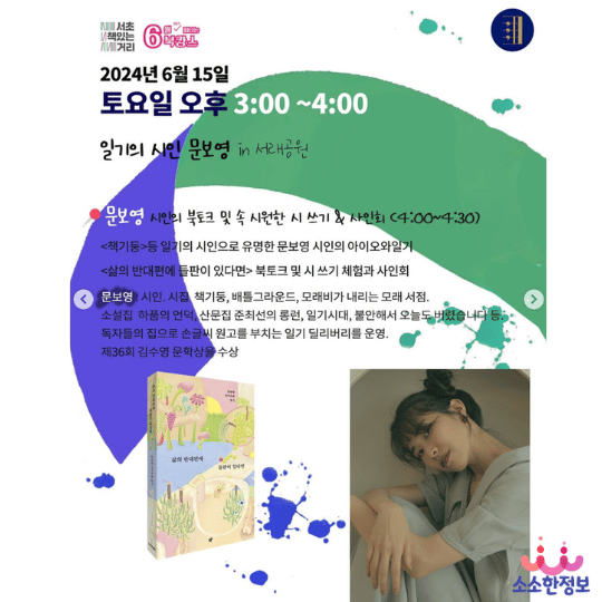 📍3시 : “삶의 반대편에 들판이 있다면” 북토크 및 속 시원한 시 쓰기 체험, 사인회 등 with 문보영 시인 (사전신청)