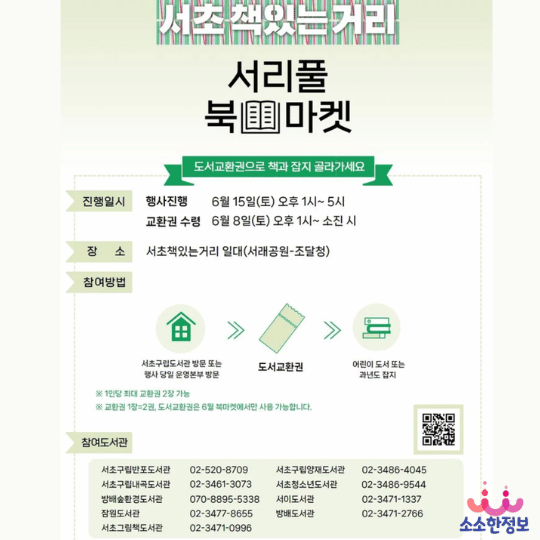 서리풀 북마켓의 도서교환권 배부에 관한 안내입니다.