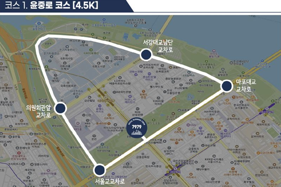 3-2) 여의도공원 코스 (코스는 매 주차별 상이) ※이미지를 클릭하시면 크게 보실 수 있습니다.